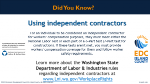 EDC Island County is proud to announce a new partnership with the Washington State Department of Labor & Industries (L&I), through their Small Business Outreach Contracts program.